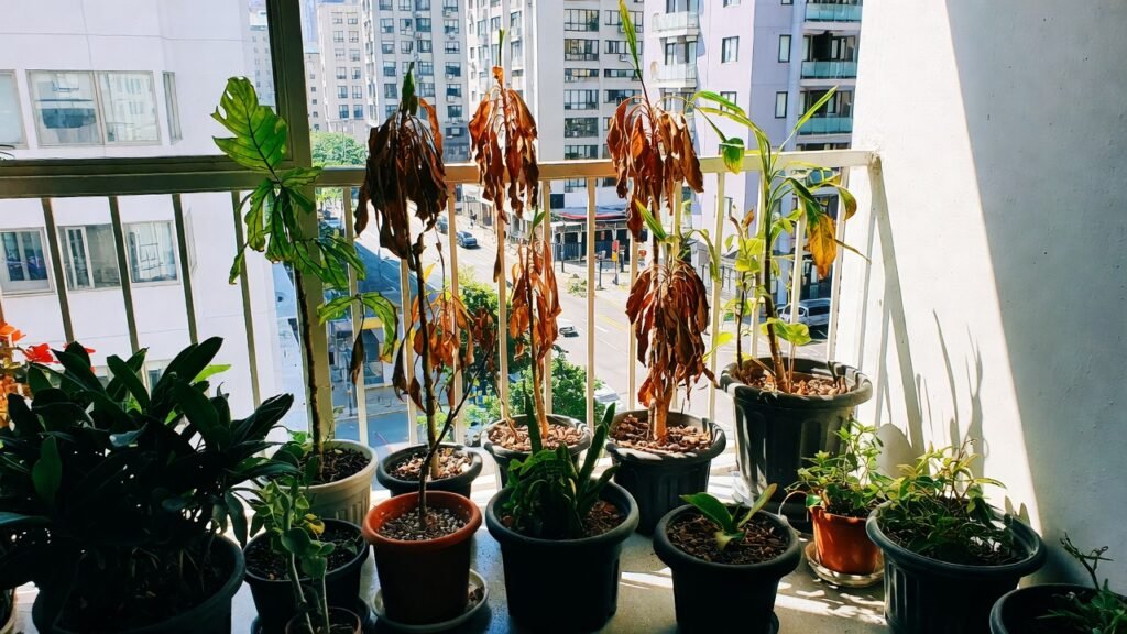 Overwatering is one of the most frequent killers of balcony plants. Containers with no drainage holes or soil that retains too much water can suffocate roots, leading to root rot.